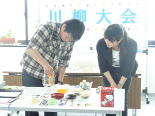 お茶の注ぎ方から給仕の仕方まで勉強して、次に川柳を作る勉強をしました。